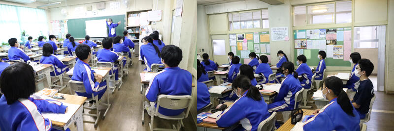 3組は数学の授業で、平面図形の見方を広げる学習をしていました。いままで見ていた図形の見方を変える単元です。どんな見方になったかな。