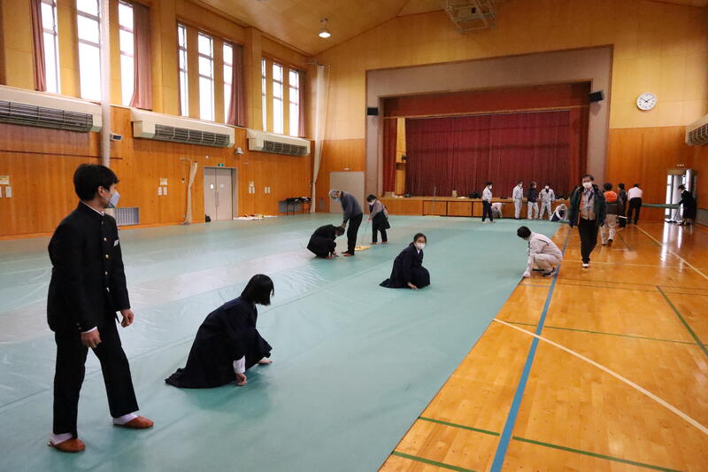明日のほくしんフォーラムに向けて生徒会役員のみなさんは会場準備と発表練習を行いました。この2年間の地域連携協働事業の取り組みを明日発表いたします。