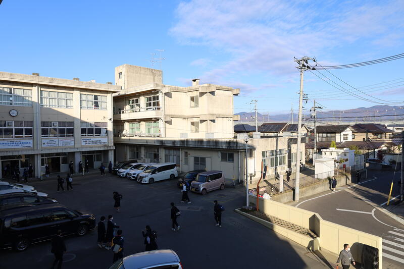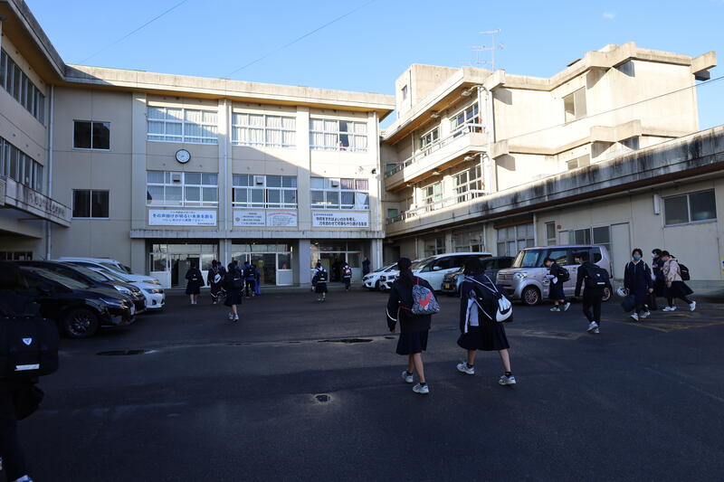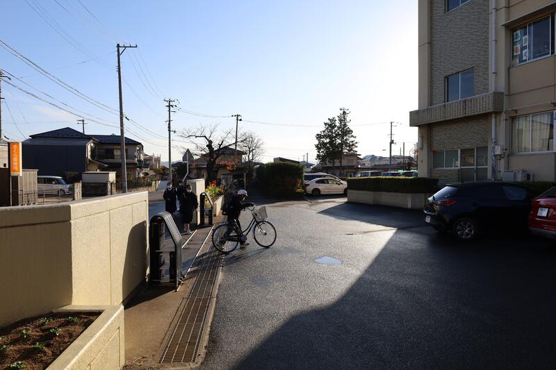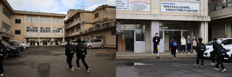 寒い朝でしたが、明るい日差しに包まれ、元気に登校していました。