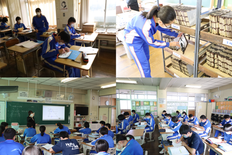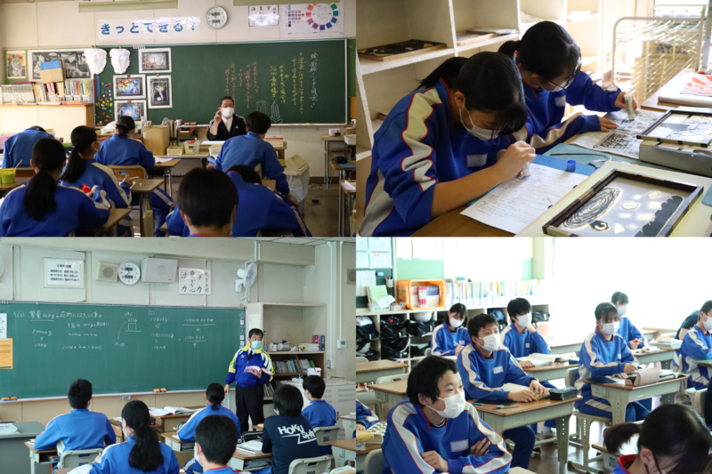 5組は技術の授業で、自分の作品の設計図を等角図法でかいていました。どんな作品ができるのでようね。とても細かく製図していた生徒もいました。