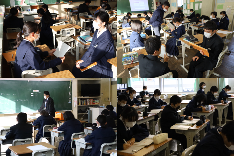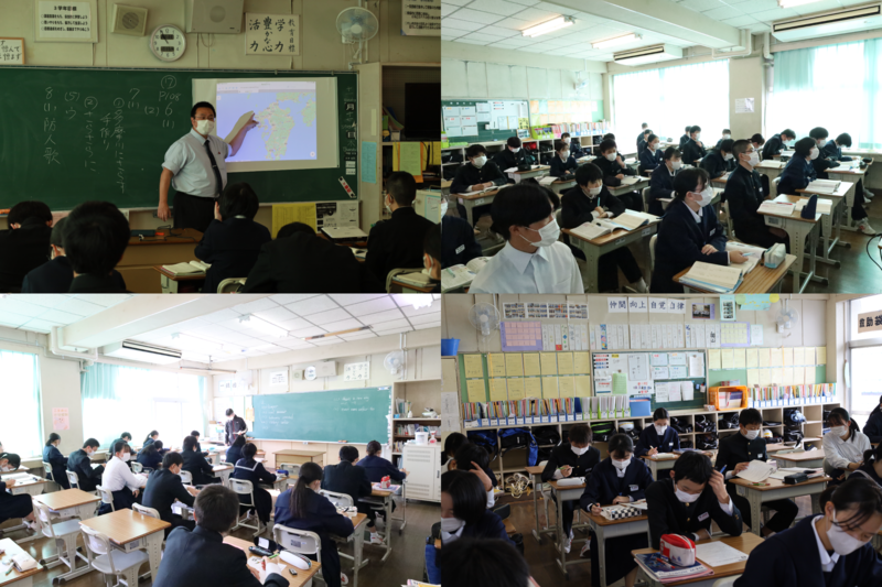 1組は国語の授業で、古典の平家物語について学習していました。十二支の利用や係り結びについて学んでいました。