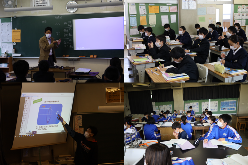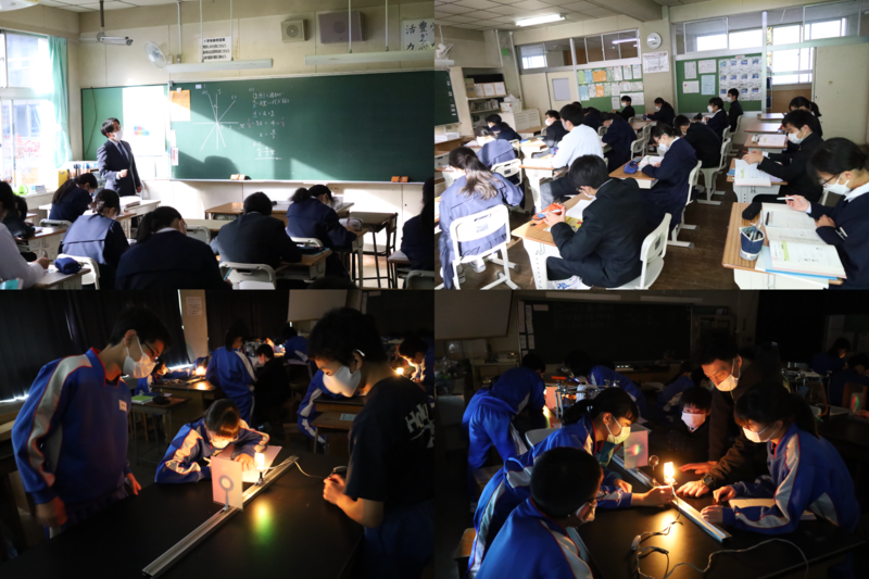 4組は理科の授業で、像のできかたについて実験していました。焦点距離を確認しながら起こっていました。