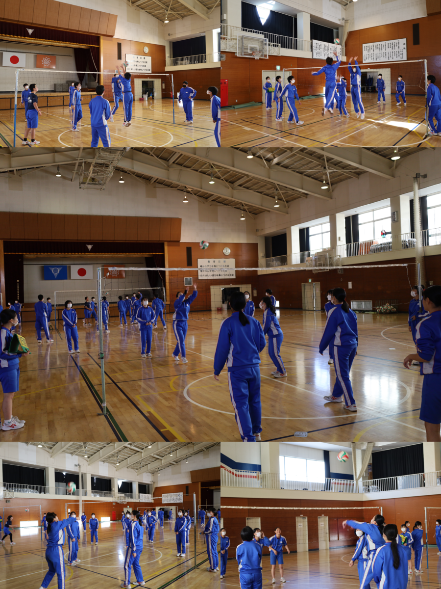 1,2組は体育授業でバレーボールを行っていました。試合間の時間を最小限にするように動き、試合時間をたくさんとっていました。