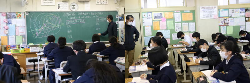 7組は理科の授業で、寒冷前線と天気の変化の学習を行っていました。今日の強風もこの前線に関わってきているのでしょうか。