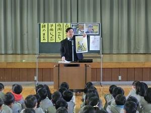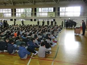また、2校時目には、体育館で始業式を行いました。校長先生から、がんばってほしいことや画家の星野富弘さんがどのようにして絵を描くようになったか、手を失った星野さんがもし手があったらば何がしたいかの話など、とても心に残る話をしてくださいました。