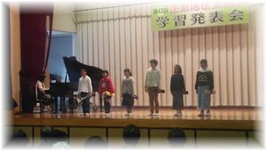 「赤い屋根の家」の歌と,「栄冠は君に輝く」の鍵盤ハーモニカでの演奏とうたを披露しました。