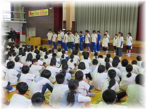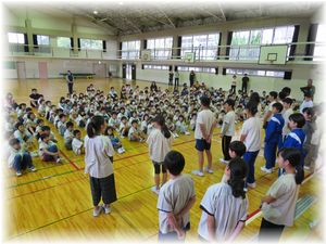 10月2日に福島市小学校陸上競技大会が行われます。今日の全校集会では,出場選手の激励会を行いました。