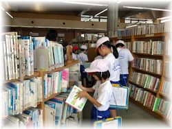 図書館では,紙芝居を見せてもらったり,図書の配架について教えてもらったり(必要な本を探すときに役に立ちますね)と,有意義な学習をしていました。