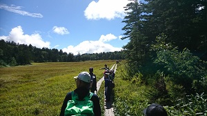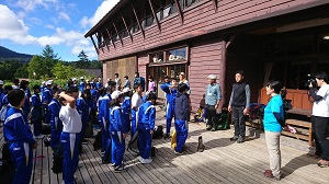 案内してくださるガイドさんに挨拶をしました。お昼を食べて尾瀬ヶ原へ出発です。