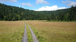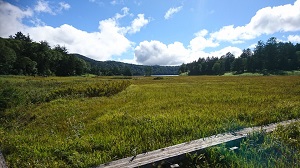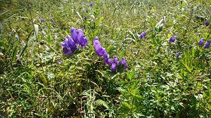 尾瀬ヶ原は、天気もよくとてもきれいです。たくさんの植物のなかに、トリカブトの花がありました。
