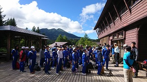 午後14時50分、尾瀬ヒュッテに到着しました。天気は晴れ、けがもなく元気に過ごしています。