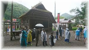 桧枝岐歌舞伎の舞台や,桧枝岐独特の家のつくり(壁土が手に入らないため,板で作った家)などの説明を聞きました。