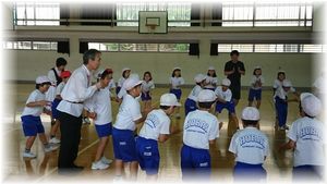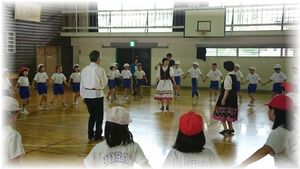 佐藤様をはじめ,3名の方を講師にお迎えし,3年生にフォークダンスを教えていただきました。