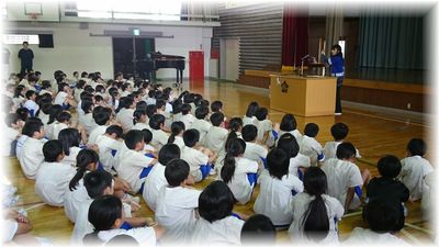 全校集会では,校庭での遊び方や安全に生活することについて,佐藤先生からお話をしていただきました。
