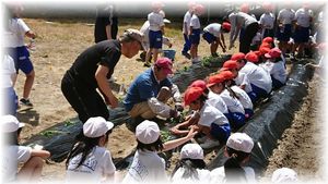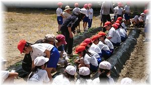 2年生は,なごみ会の方々に教えていただきながら,サツマイモの苗うえを行いました。