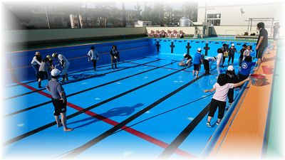 平成30年5月28日(月)にプール清掃を行いました。職員作業で行おうと計画していたのですが,PTAの皆さんがお手伝いに来てくれました。