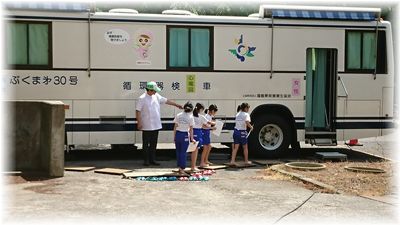 蓬莱小学校に循環器検診車“あぶくま第30号”がやってきました。