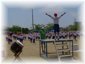 蓬莱小学校では,土曜日の運動会に向けて2回目の全体練習を行いました。