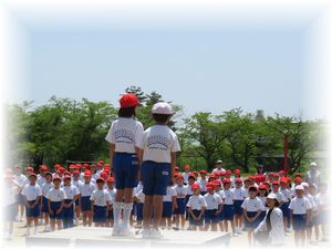 また、2回目の練習なので、1・2年生が教室に戻った後、3年生以上で閉会式の練習も行いました。