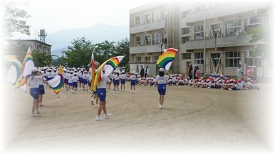 蓬萊小学校の運動会は今週末の5月19日(土)に行います。天気予報では、何とが天候も持ちそうですが、実施する場合は当日の朝6:30に、花火でお知らせします。(雨天順延です)