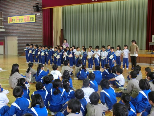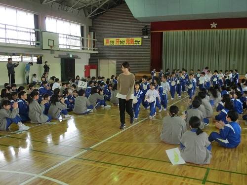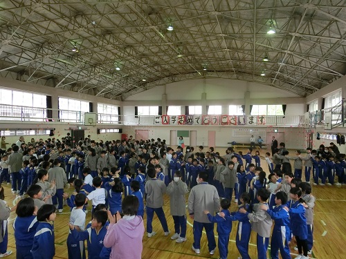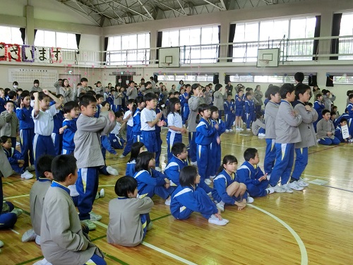 今日の3校時目に、本校体育館で1年生を迎える会を行いました。6年生が中心になり、1年生に喜んでもらうように楽しいゲームやり、全校生で校歌も歌いました。また、3年生からは1年生へプレゼントもあり、1年生たちもとても喜んでいました。1年生にはこれからさらに、学校に慣れて友達をたくさん作り楽しい学校生活を送ってほしいと思います。