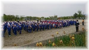 全校生、真剣に参加することができ、先生方の引率で整然と避難を完了することができました。