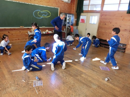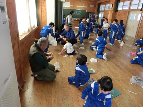 6日(水)の3・4校時、生活科の学習に講師の先生を招いて、おもちゃ作りをしました。子どもたちは集中して作品作りに取り組み、楽しく遊ぶ姿が見られました。