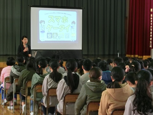 2017年11月20日 15時57分 今日の6校時目に4年生以上の学年と保護者の皆さまを対象とした学校保健委員会が行われました。今回はNTTドコモの方を講師として迎え、スマホ・ケータイ安全教室を行いました。携帯を使ったことのある児童はほとんどで、携帯メールの安全な使い方やなりすましなどのネットの怖さなど、児童はとても勉強になったようでした。