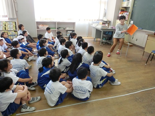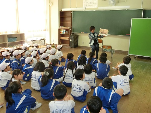 8日(火)のお昼休みに、1・2年生で本の読み聞かせがありました。それぞれ学年ごとに分かれ、読み聞かせの先生に本を読んでいただきました。子どもたちは本に集中して話を聞いていました。