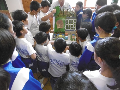 3・4校時、県北建設事務所の方をお招きし、5年生を対象に防災に関する出前講座が行われました。集中豪雨による洪水や土砂災害の自然災害から自分の身を守るための知識を身につけるために、実際に起こった災害の写真や映像、模型などを使って土砂災害の現象や避難方法について学びました。
