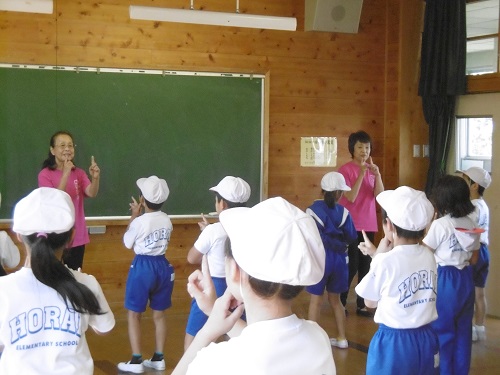 今日の3・4校時に3年生は、総合で手話ダンスをしました。初めての手話、そして手話とダンスを一緒にやることの大変さなどを知り、講師の先生から丁寧に教えていただきました。
