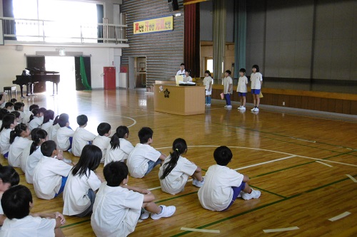 今日のお昼休みのあとに、全校集会を行いその中で学年のめあて発表がありました。代表の児童たちは、夏休みのことや2学期がんばることを大きな声ではっきり発表することができました。また、めあて発表のあとには表彰が行われました。