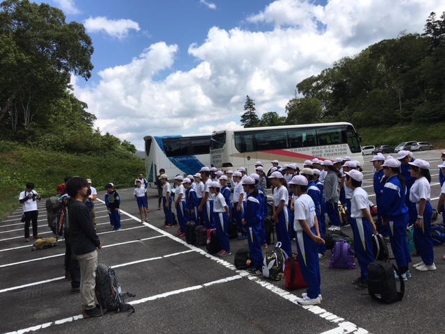9月5日(火)~6日(水)の6年尾瀬自然環境学習1日目、快晴の下、計画通りみんな元気に順調に進んでいるようです。ガイドさんと顔合わせしている場面です。