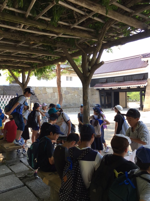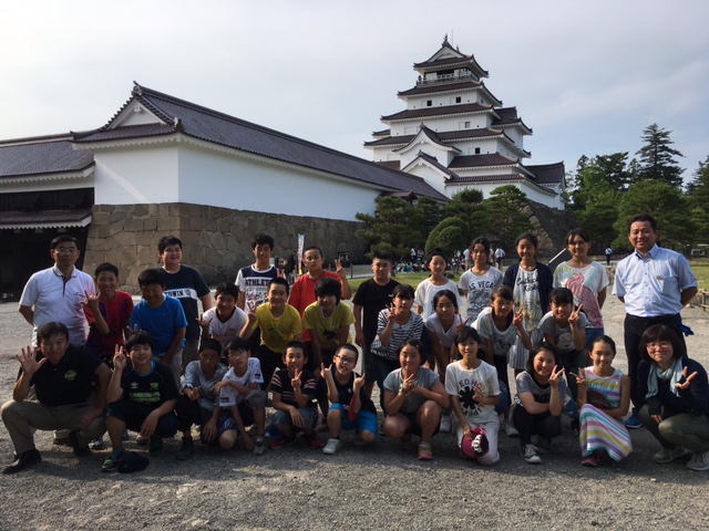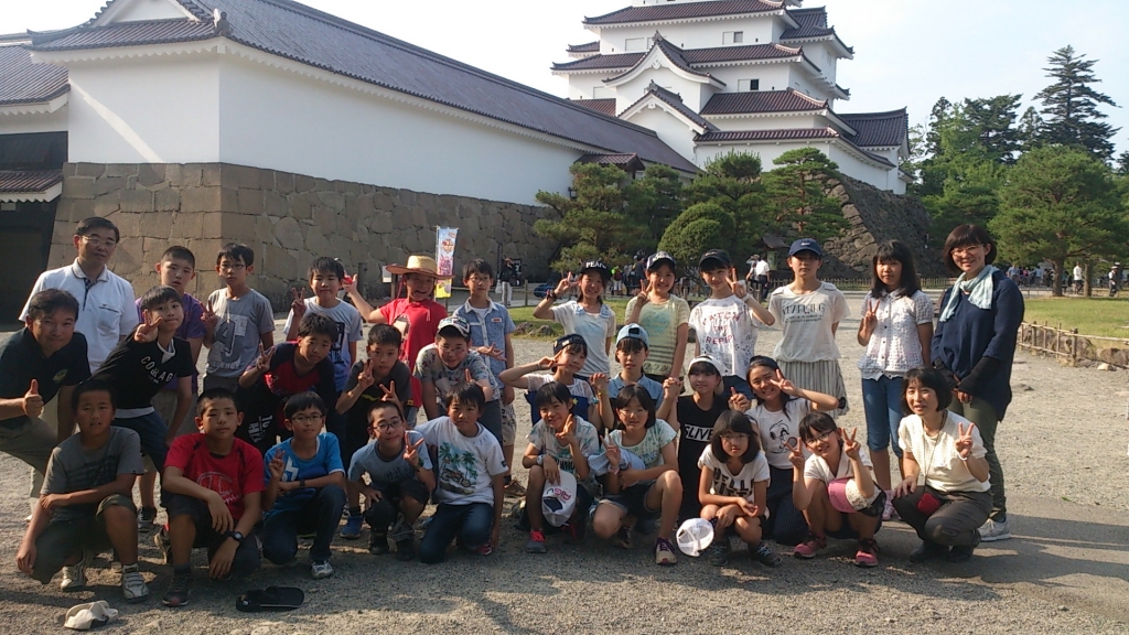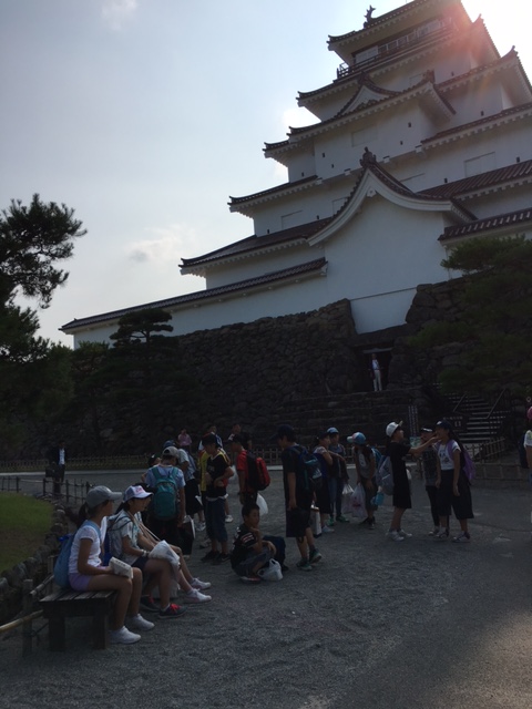 各班毎に行ったフィールドワークを終えて、約束の時刻、午後4時まで鶴ヶ城の集合場所に戻って来ました。また、各学級ごとに鶴ヶ城をバックに記念写真を撮りました。