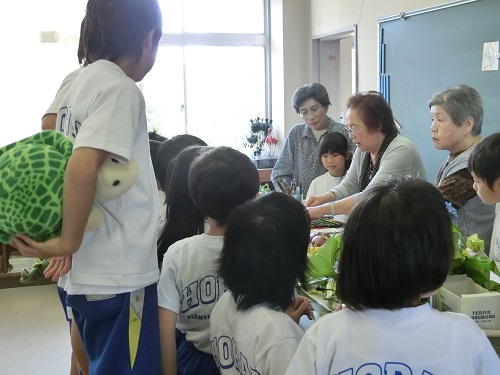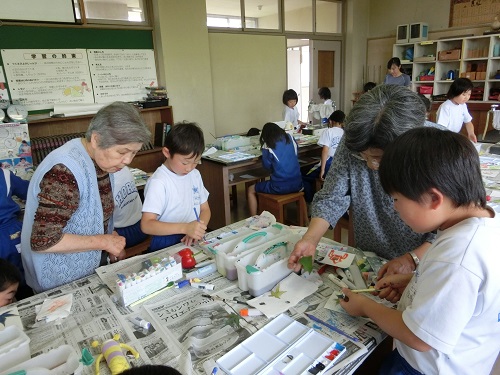 今日の2・3校時に、講師の先生がいらっしゃって3年生は絵手紙の描き方を習いました。先生が描くのを見て、一人一人がどのように描いていくかを考えて、上手に描くことができました。