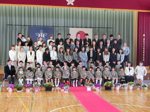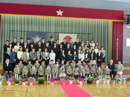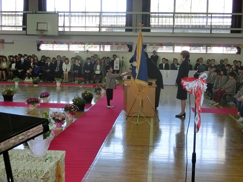 担任から、一人ひとり呼名され、元気に返事ができました。また、代表児童に、校長先生から教科用教科書が授与されました。6年生により歓迎の言葉、2年生代表児童8名による鍵盤ハーモニカやなわとびの発表などがありました。