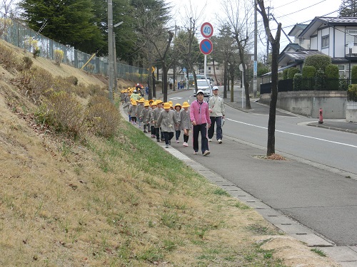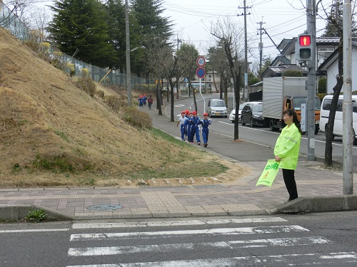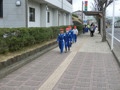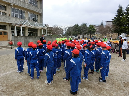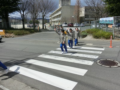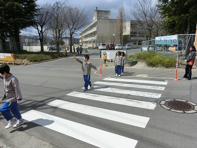 7日(金)2校時に1~3年生は、蓬莱地区交通安全母の会の会長さんを始め6名の方々の協力で、周辺の道路を使って、安全な歩行や横断の仕方を学習しました。
