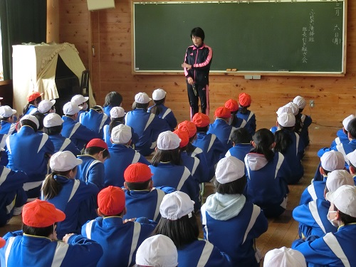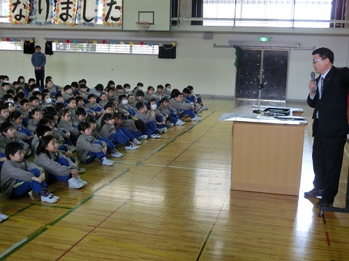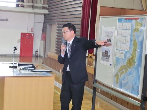 10日(金)業間の時間を活用して、全校集会を開きました。明日11日(土)で東日本大震災から6年になります。始めに全員でなくなられた方々へ黙祷をし、その後、今生きていることに喜びを感じ、命の大切さを考え、自分の命はもちろんほかの人の命も大切に思い、これからも強く生きてほしいという話を校長先生からいただきました。