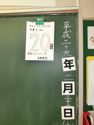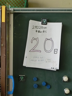 6年の各教室には、卒業式までのカウントダウンカレンダーが掲示されています。卒業式まで後20日となりました。