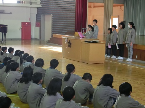 その後、各学年の代表児童が、2学期にがんばったことや冬休みにがんばりたいことなどを発表しました。