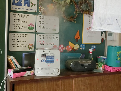 12月1日(木)に臨時PTA理事会で加湿器の購入を承認していただきました。早速注文し、各教室に加湿器が入りました。今まで、教室内の乾燥を濡れタオルや霧吹きなどで対応していましたが、加湿器を購入していただいたことで、教室内の湿度をある程度保つことができると思います。