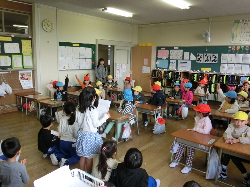 1日(火)1年生が、町内の幼稚園、保育所との交流活動を実施しました。