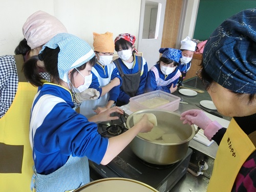 こんにゃく作り 2017年2月23日 15時37分 今日の出来事 23日(木)学校教育支援事業の一環として、JAふくしま未来福島地区の方々が来校され、4年生がこんにゃく作りに挑戦しました。こんにゃくいもをすりおろすところも体験し、最後に味噌こんにゃくにしておいしく食べました。