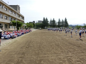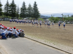17日(水)の朝の時間を活用し,全校生が校庭に集まり,4年生が中心となって5・6年生鼓笛パレード激励式を行いました。5・6年生の「校歌」と「威風堂々」演奏を聞きました。本日の市の鼓笛パレード,堂々と演奏してきてほしいです。