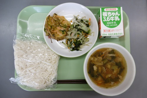 5月17日(水)の給食献立 2017年5月17日 13時02分 今日の出来事 今日の給食は、「浪江町ふるさと献立」でした。小女子のかき揚げは、浪江町の料理です。メニューは、ソフト麺、牛乳、小女子のかき揚げ、おひたし、山菜うどんかけ汁でした。