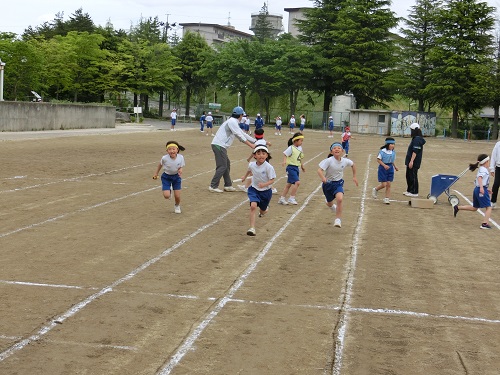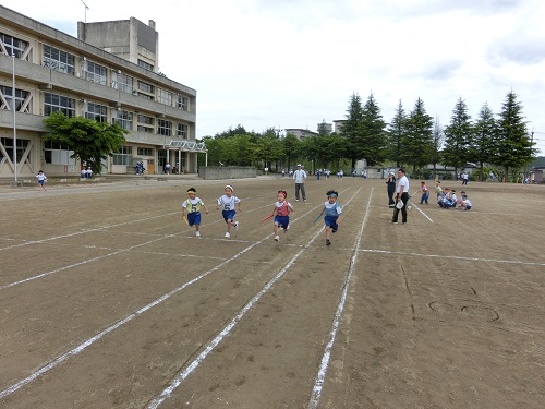 2017年5月17日 13時51分 今日のお昼休み、1・2・3年生(低学年)のリレー練習を行いました。天候が優れずに校庭での練習がなかなかできなかったですが、今日はじめて校庭で練習を行いました。整列の仕方や走り方等先生方に教えていただき、元気いっぱい走る姿が見られました。