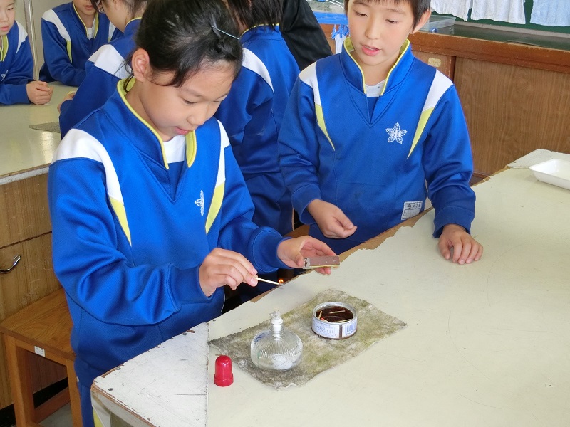 アルコールランプ・ガスコンロの正しい使い方を学習 4年 2016年10月24日 15時19分 4年 24日(月)4校時に、4年の理科の学習で、アルコールランプとガスコンロの正しい使い方を学習しました。子どもたちは、マッチに火をつけるのに悪戦苦闘していました。