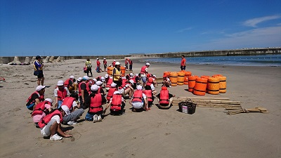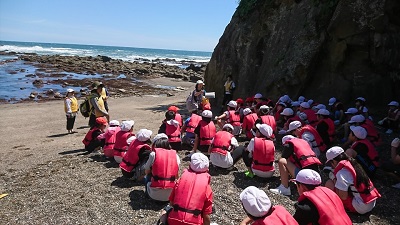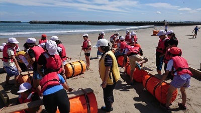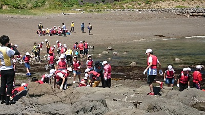 5年生宿泊学習2日目です。 2018年6月14日 15時14分 5年 2日目は、みんなで朝食をとった後に、海岸で磯遊びをしました。磯遊びの後には、いかだ作りをお互いに協力し合って行いました。みんな元気に過ごしています。