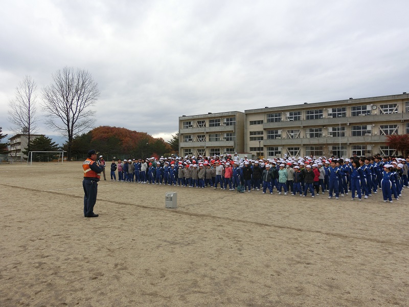 17日(木)、児童には予告なしで、第4回安全学習(火災対応)を実施しました。南消防署の5名の署員の方々に来校していただき、実際に児童の避難の様子を見てご指導いただきました。また、教職員による消火訓練も行いました。
