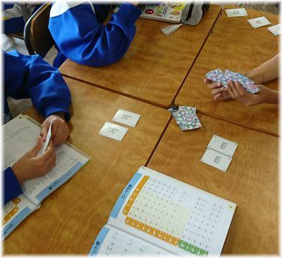 Do you have ~ ? 2019年6月12日 19時34分 5年生の外国語の学習は,アルファベットのカードを使って,友達が持っているカードをもらい,ペアにするというゲームを行いました。みんな夢中になって,Do you have ~?とアルファベット集めを行いました。